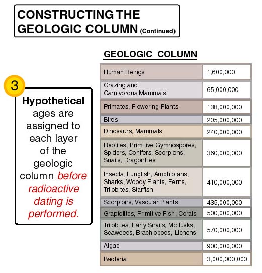 This series of illustrations corrects the false perceptions about dating methods by accurately explaning how radiometric dating and relative dating actually work and how the geologic column is actually created. Emphasis is placed on the circular reasoning and critical assumptions that are key to producing the long timeframe necessary for the theory of evolution.