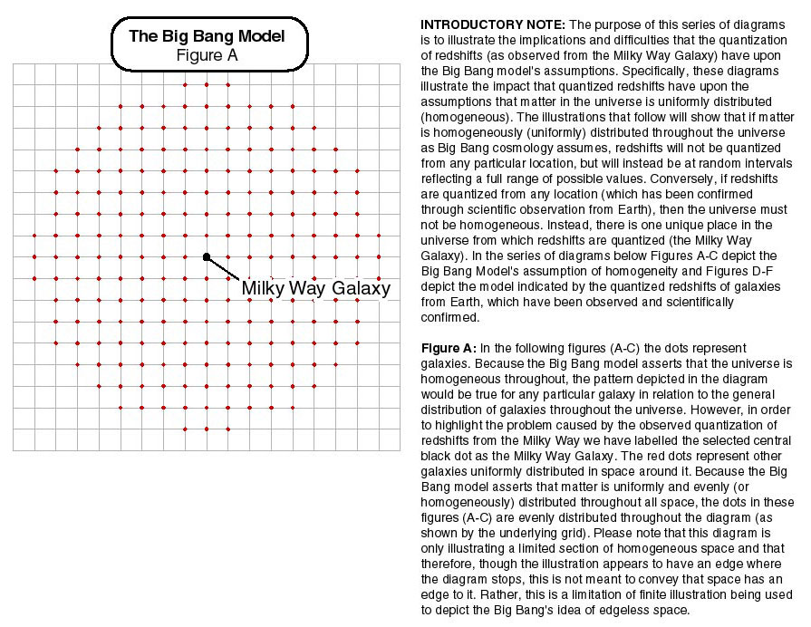 This series of illustrations depicts that the quantization of redshifts from Earth is a unique phenomenon that can only occur at a single location in the universe. These observations are incompatible with the Big Bang model's assumption that the universe is homogeneous.