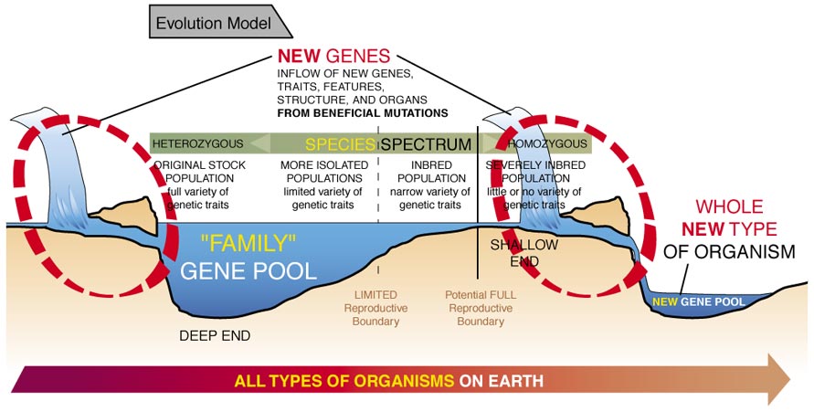 This series of illustrations highlights the critical area of disagreement between creationism and evolution - whether kinds of organisms can only reproduce after their kind or if new kinds of organisms emerge from different kinds of organisms.
